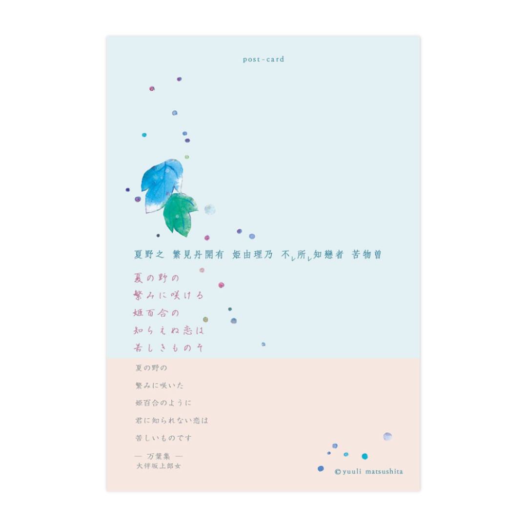 訳┃夏の野の 繁みに咲いた姫百合のように 君に知られない恋は 苦しいものです